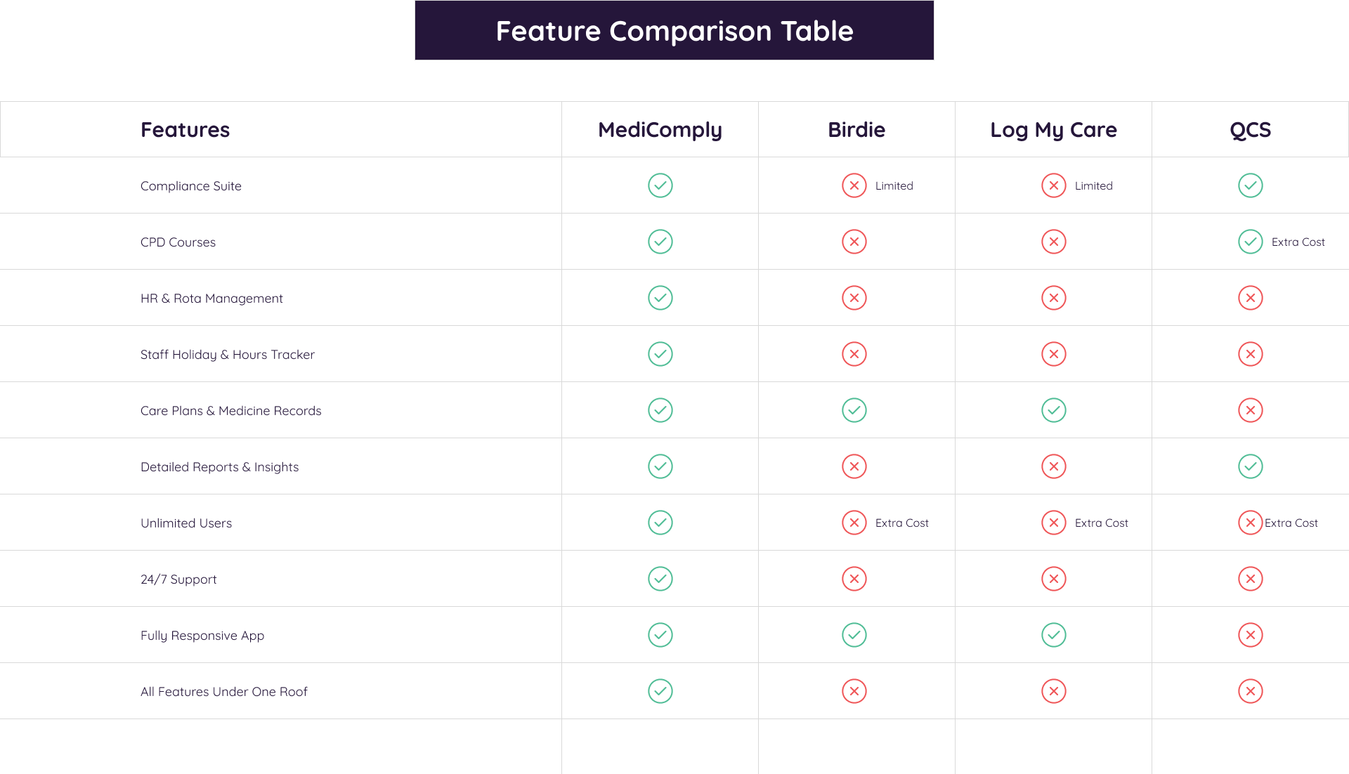 Medicomply is your all-in-one compliance software designed to streamline care plans, keep you on top of CQC regulations, and ensure your practice is always inspection-ready.